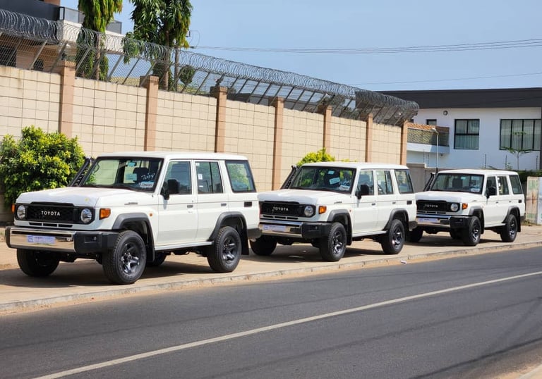 Brand new Toyota Land Cruisers, Prados, Hilux, and Fortuners ready for you.